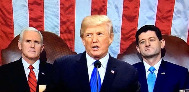 In his first State of the Union address, Presdient Trump said nothing about how to pay for his now $1.5 trillion infrastructure plan. Photo: TV screenshot