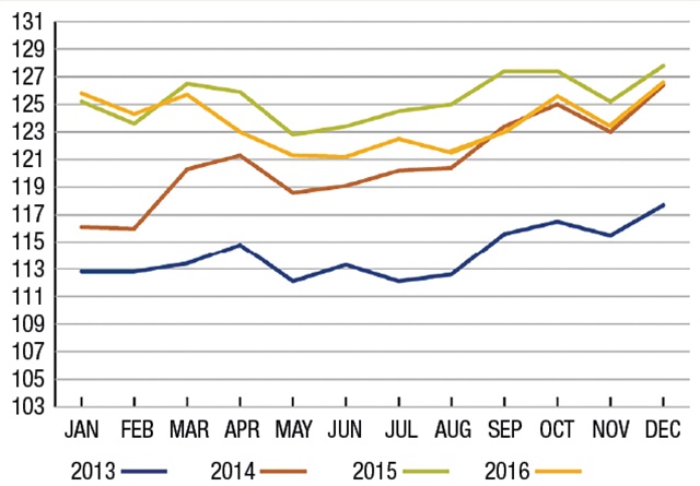 That's because the December reading improved 2.6% compared to the month before. That marked the index's biggest month-over-month gain of 2016 and its highest reading since December 2015.