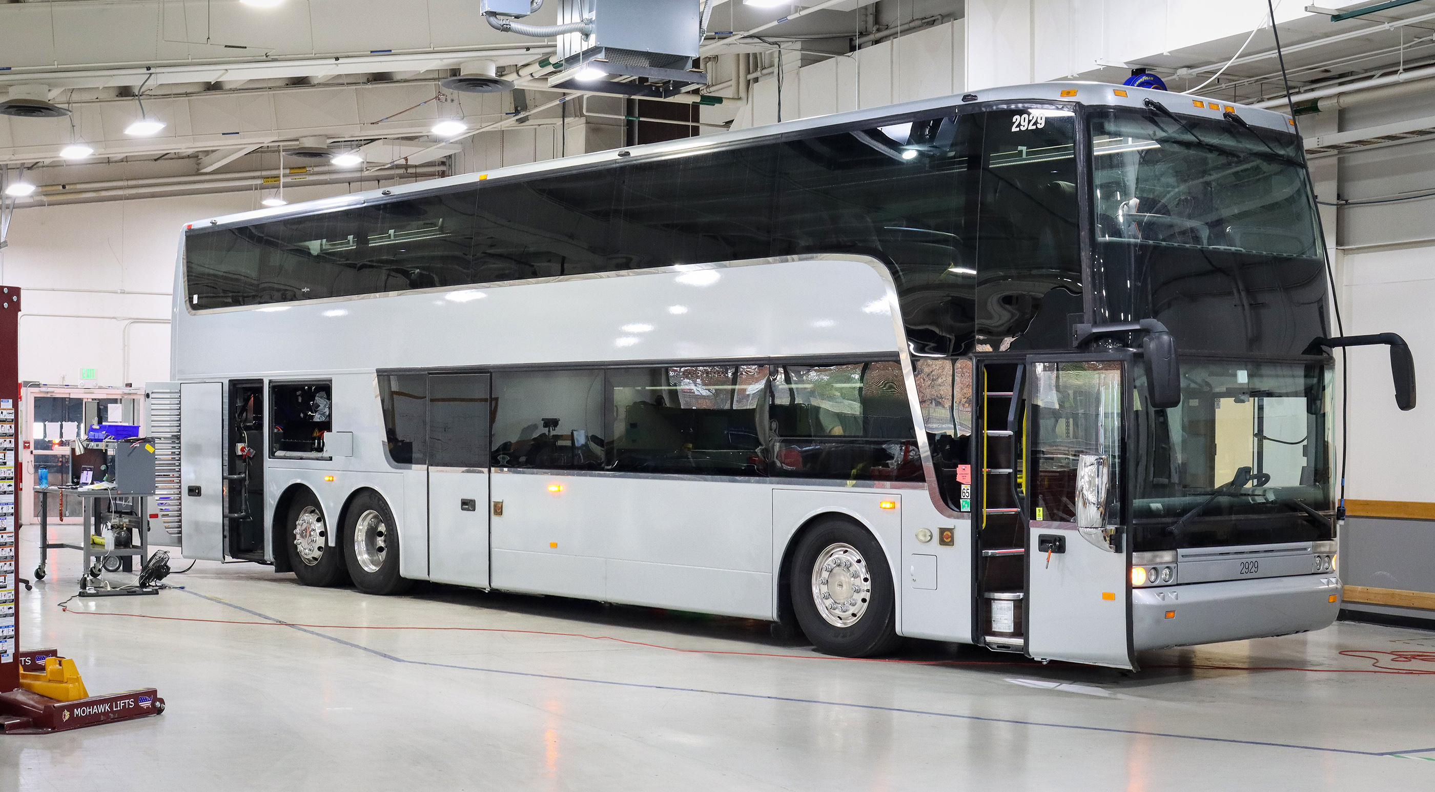 The first delivery to Lux Bus America in Anaheim, CA will be a Van Hool TD925 repowered double-decker electrified by Lightning eMotors from diesel to all-electric. It touts a 640 kWh battery capacity, the largest known to exist for a vehicle of its type, an estimated range of over 200 miles, and a charge time of under six hours with a 150 kW DC fast charger. The coach has a seating capacity of 70 people.