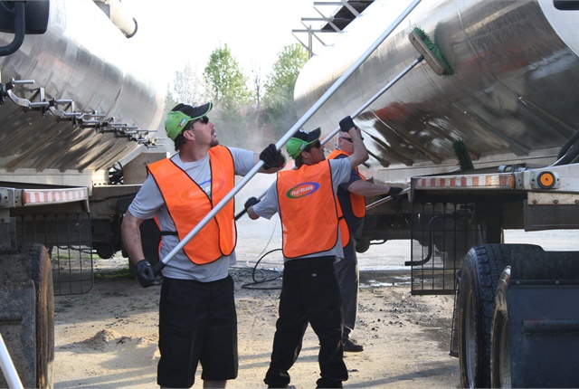 Washing trucks on a customer's property eliminates the need to set up wash bays or run them through facilities while on the road. Photos: Fleet Clean USA